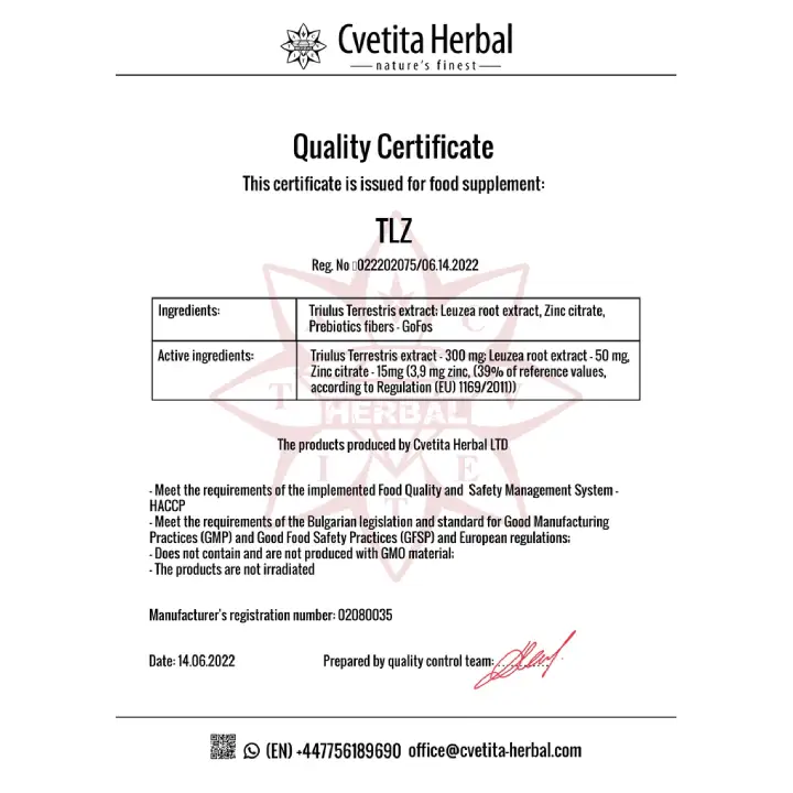 TLZ is een zorgvuldig ontwikkelde formule met Leuzea-extract, Tribulus Terrestris-extract en zink die op een volkomen veilige manier een gezonde hormoonspiegel ondersteunt.